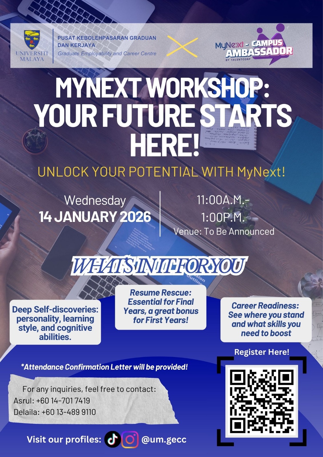 UM GECC’s UM Career and Talent Ambassadors and MyNext Ambassadors have created this space specifically for the Final Year student who feels lost, and the First Year student who doesn't want to feel that panic later.